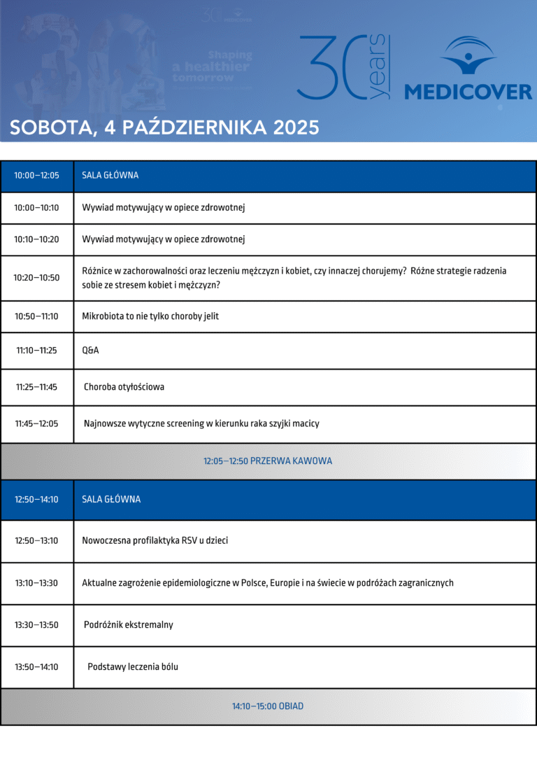 Prelegenci przekażą także najnowsze informacje na temat postępów w diagnostyce i terapii otyłości, screeningu w kierunku raka szyjki macicy oraz w obszarze szczepień.