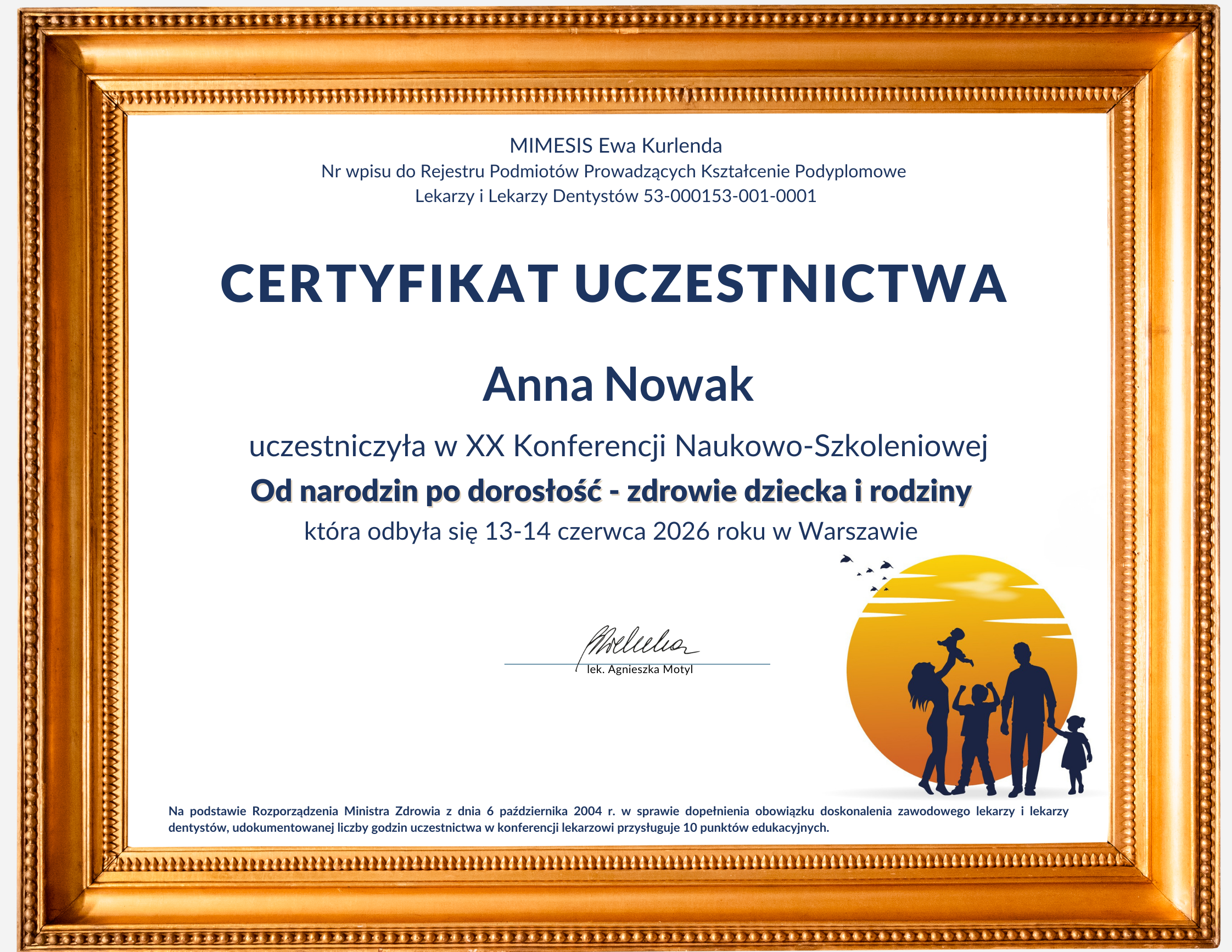 Certyfikaty uczestnictwa zostaną wysłane po zakończeniu konferencji na adresy e-mailowe podane podczas rejestracji na wydarzenie.