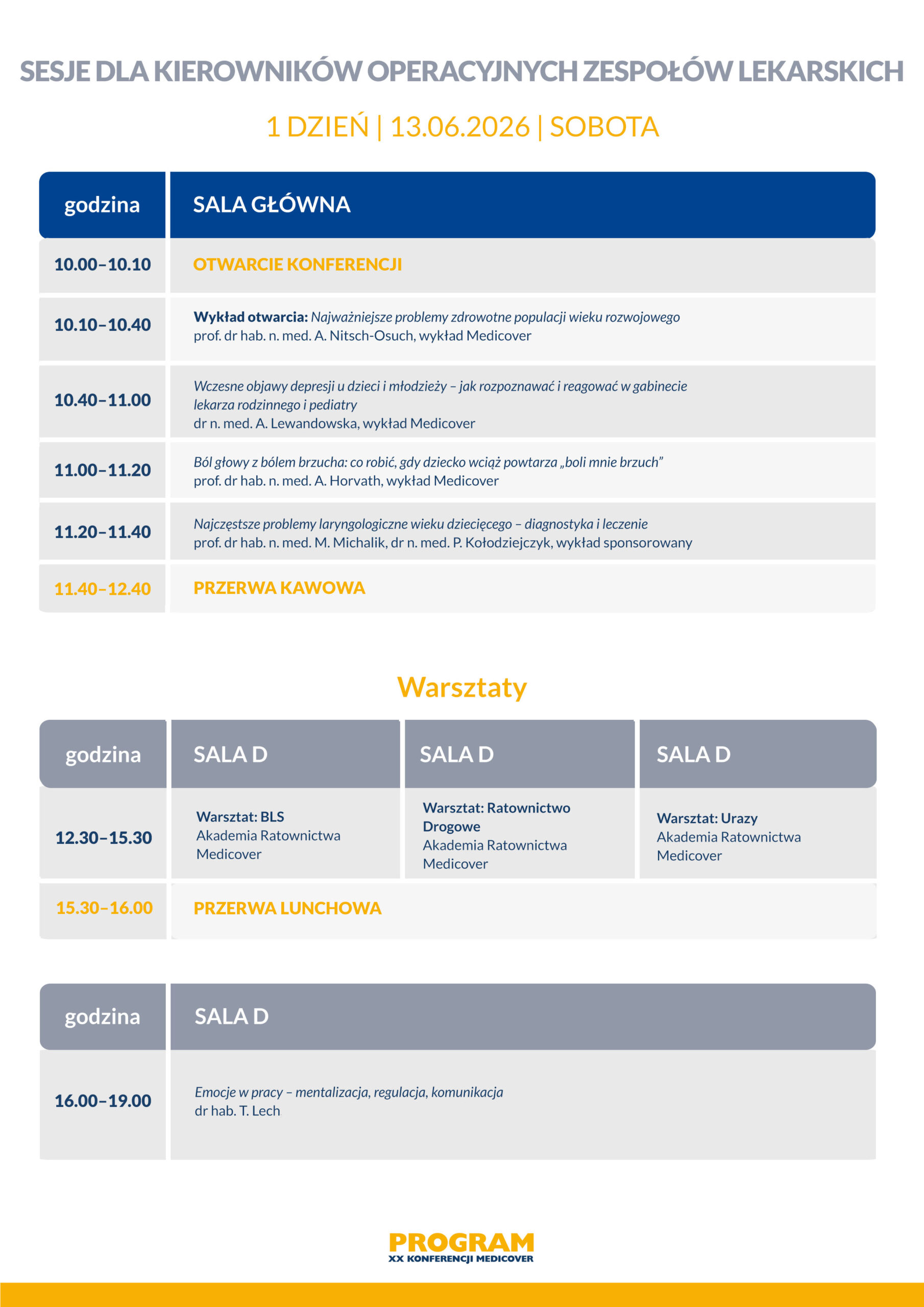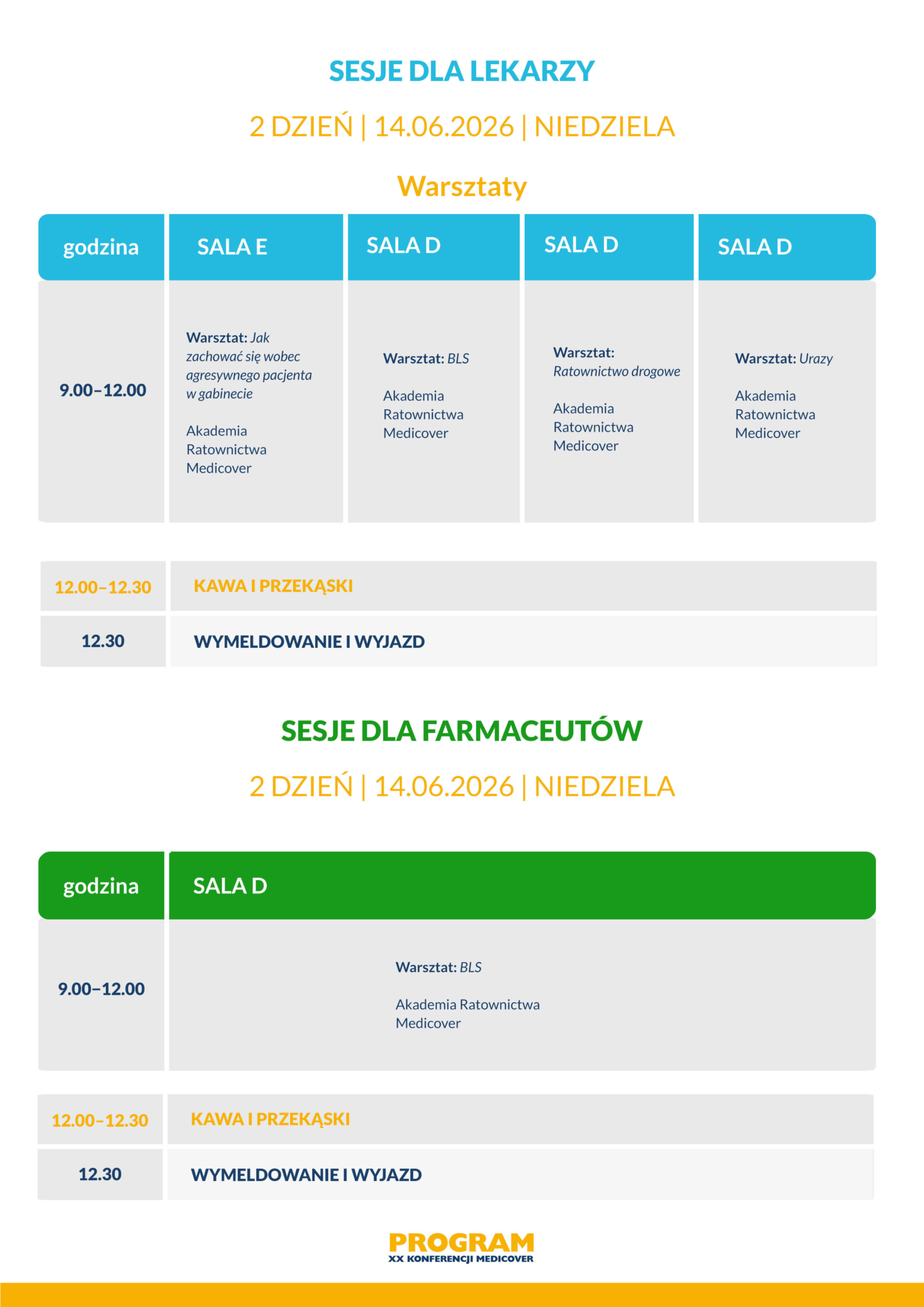 Ponadto w tegorocznej Konferencji kładziemy szczególny nacisk na rozwój praktycznych umiejętności. Dlatego przygotowaliśmy serię warsztatów tematycznych, m.in. z zakresu BLS, ratownictwa drogowego, urazów, a także dotyczących postępowania z pacjentem agresywnym w gabinecie oraz radzenia sobie z emocjami w pracy. Zależy nam, aby uczestnicy wychodzili z nich z umiejętnościami, które realnie wspierają ich w codziennej praktyce.
