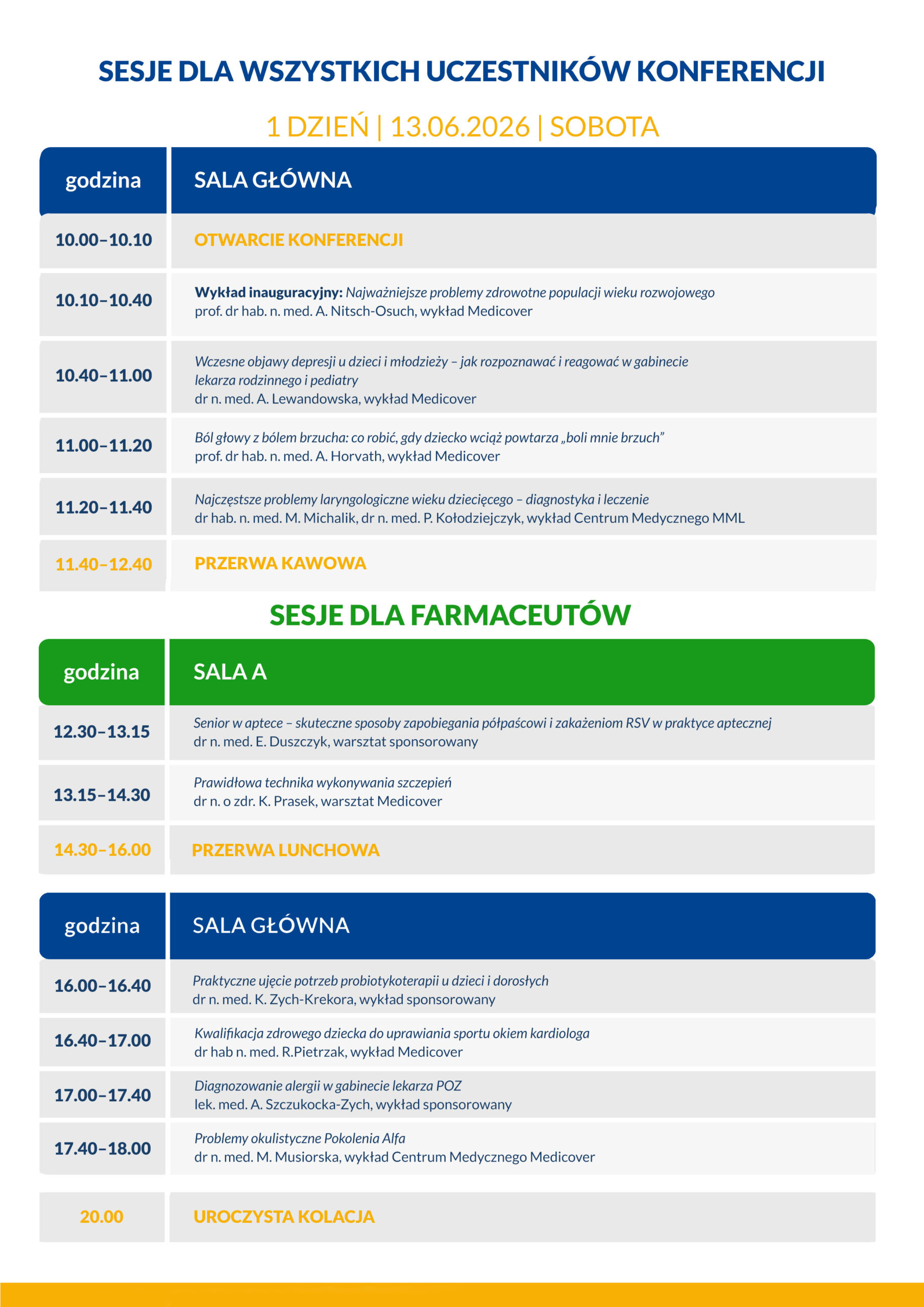 Informujemy, że 13 czerwca o godzinie 20.00 odbędzie się uroczysta kolacja, finansowana ze środków firm TRAVEL CARE oraz EMMA MDT, niezrzeszonych w INFARMIE. Uroczysta kolacja dla uczestników ma charakter bezpłatny.