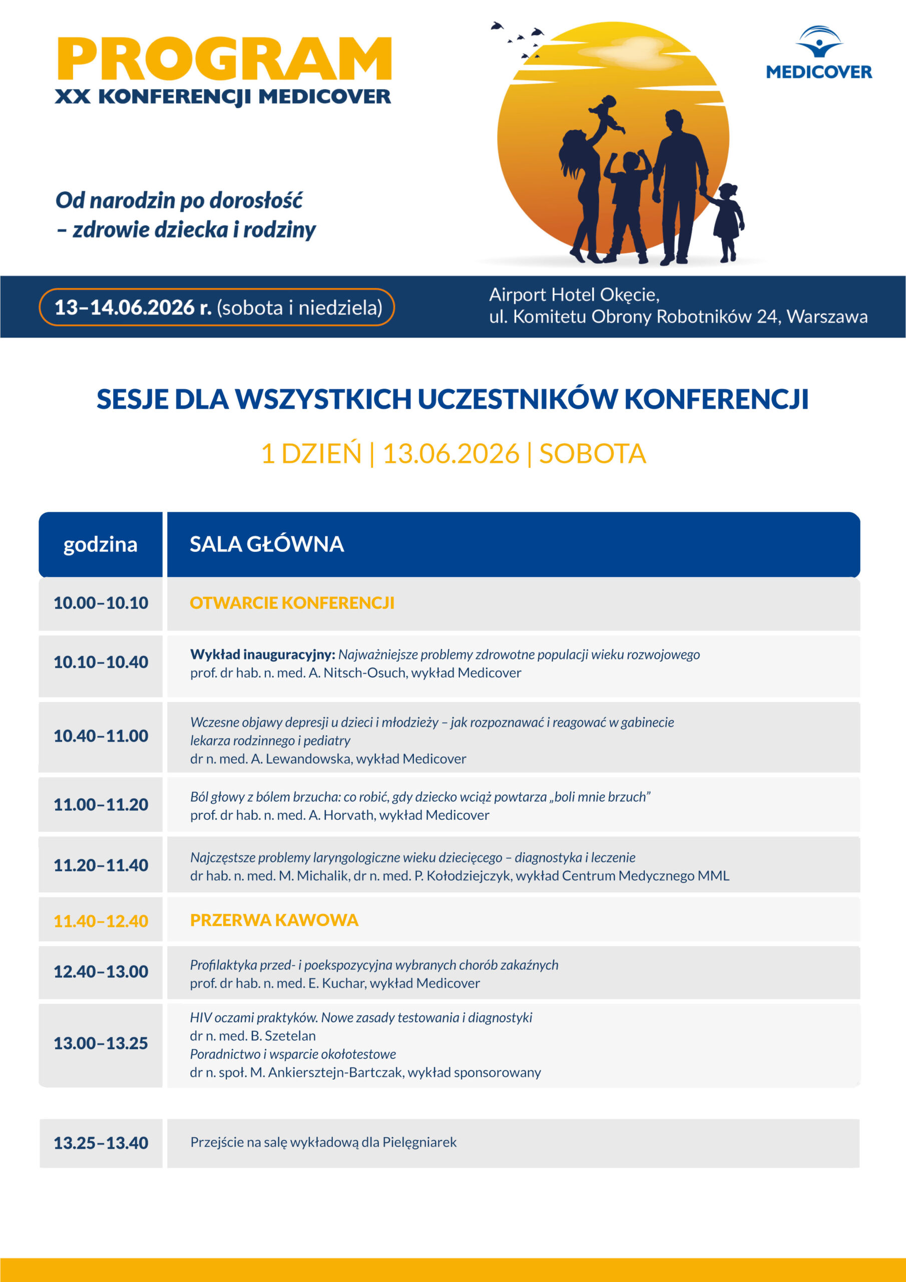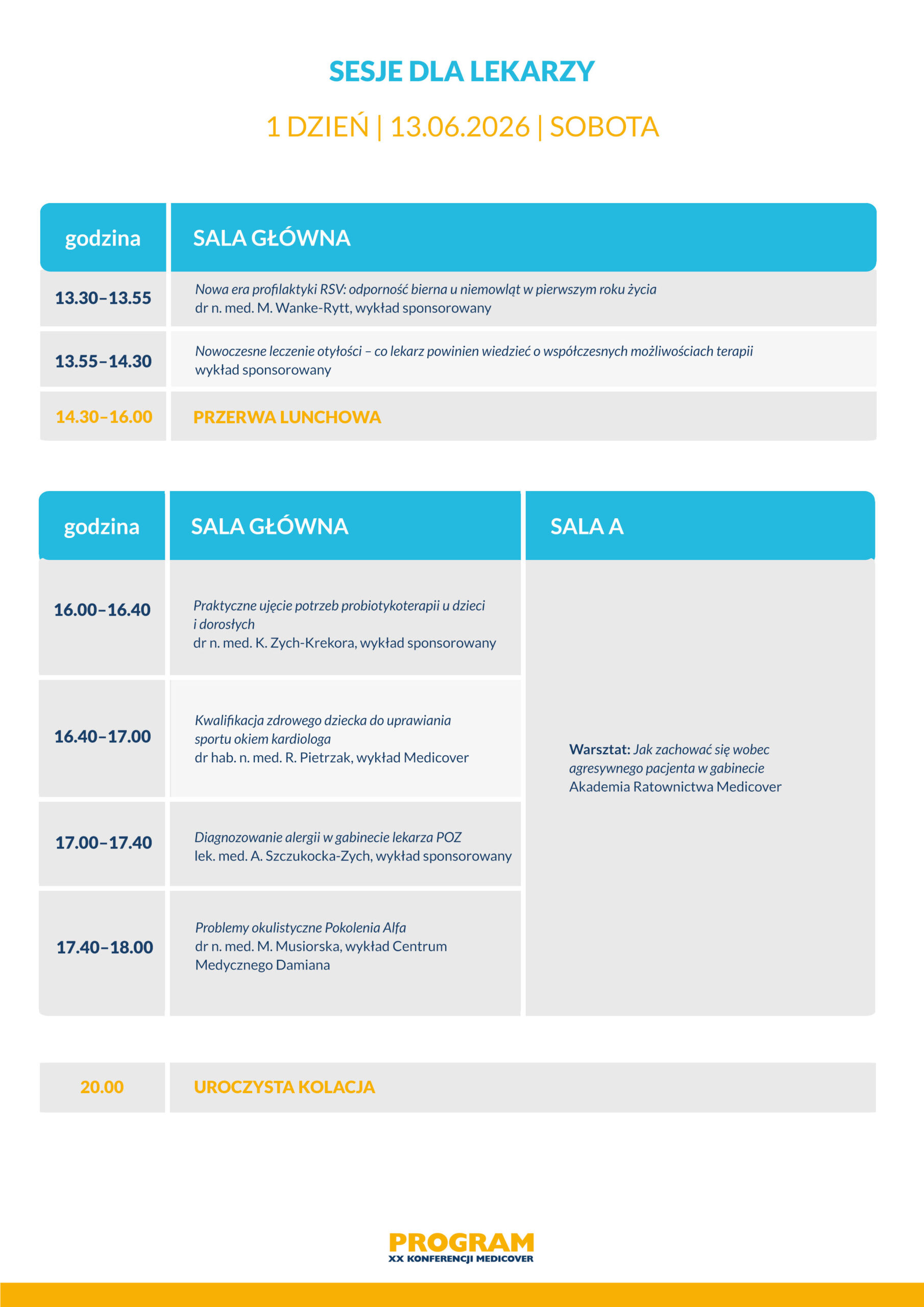 Serdecznie zapraszamy do udziału w wyjątkowej, naukowo-szkoleniowej XX Konferencji Medicover. To wydarzenie stworzone z myślą o profesjonalistach, którzy chcą poszerzać swoją wiedzę i być na bieżąco z dynamicznie rozwijającymi się obszarami medycyny.